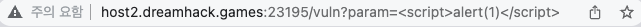 접속하게 되면 메인 화면에 <*>alert(1) 이라는 문구가 나오게 되며 url에 <script>alert(1) </script>가 추가 된것을 확인할 수 있다.