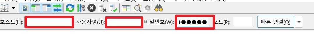 여기서 호스트, 사용자명, 비밀번호 칸이 있는 것을 확인할 수 있습니다.
