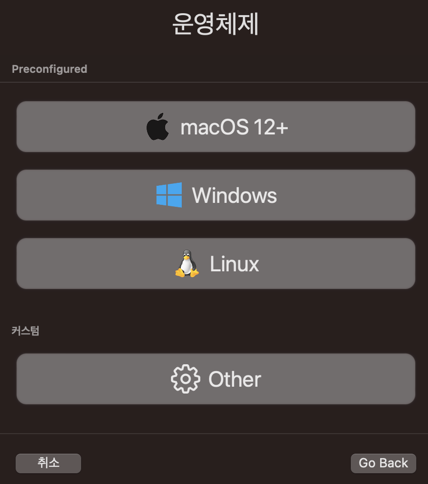이제 운영체제를 선택해야 하는데 커스텀 'Other'를 클릭합니다.